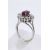 the central ruby (6 x 5mms approx.) surrounded by six round and four tapering baguette cut diamonds (1.1cts total approx.), ring size I, 5.1gms, in James Allan of Swansea ring box