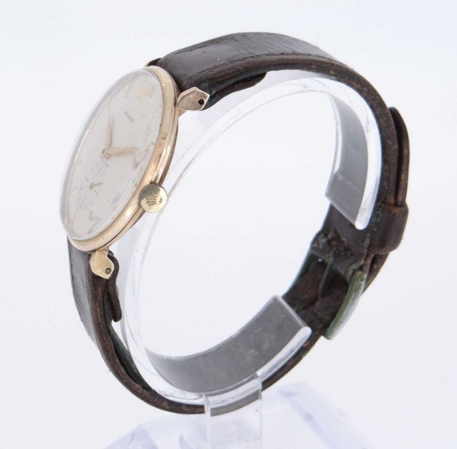 Comments: Movement – not currently functioning. Dial – good. Glass – typical light marks and scratches. Hands – pitted. Case – typical marks / scratches. Crown – adjusting correctly. Strap – vintage leather replacement
