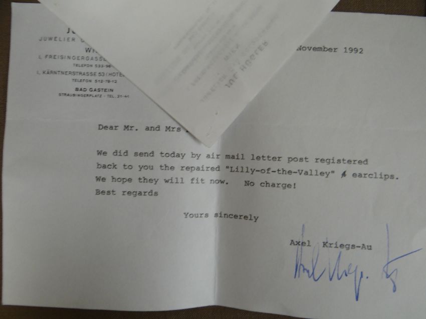 comprising 18ct gold nephrite and diamond ‘Lily of the Valley’ bar brooch, together with matching pair of earrings, in Hugler of Vienna boxes (3)Provenance: private collection Carmarthenshire, consigned via our Carmarthen OfficeCondition report:Comments: very good overall condition, no apparent problems