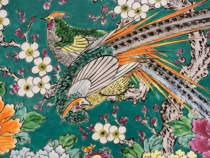 CIRCA 1900s CHINESE CHARGER - with exotic birds and floral decoration, 46cms diameter