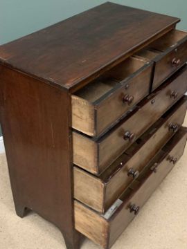 ANTIQUE MAHOGANY CHEST of two short over three long drawers, on splayed supports, 120cms H, 106cms W, 53cms D