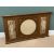 OVERMANTEL MIRROR, gilt frame with embossed detail, circular bevelled glass central mirror flanked by prints of Victorian ladies, 76cms H, 134cms W