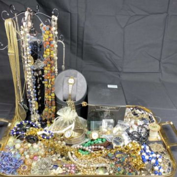VINTAGE & LATER COSTUME JEWELLERY & LADY'S WRISTWATCHES - a mixed quantity to include various necklaces, brooches, ETC