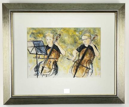 VALERIE GANZ pastel - study of two young cello players, signed, 25 x 37cms