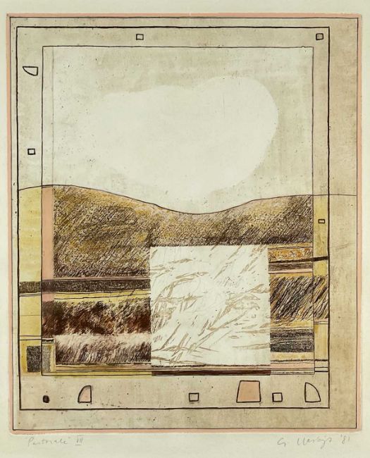 GERARD HASTINGS dry-point etching - abstract, entitled 'Pastorale VII', signed and dated 1981, 40 x 32cms (framed and glazed)