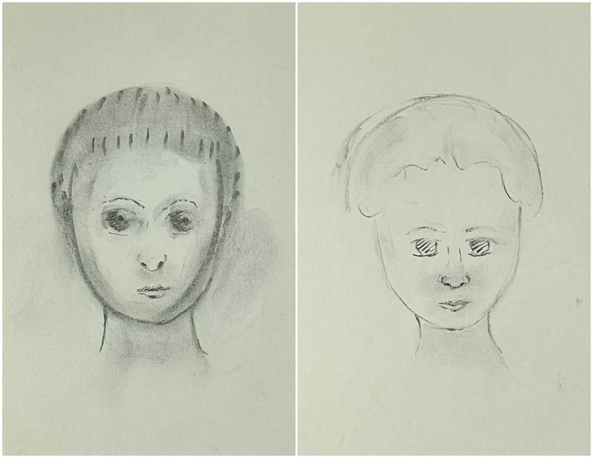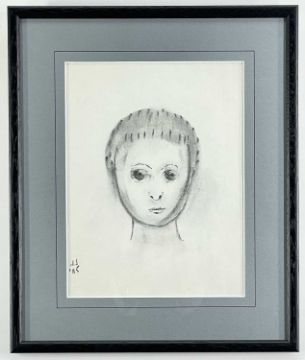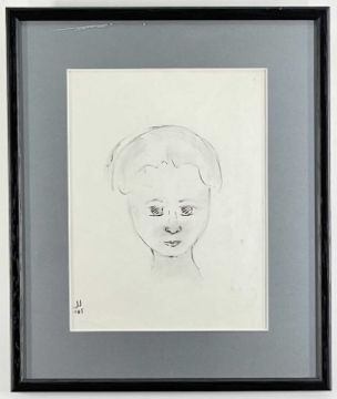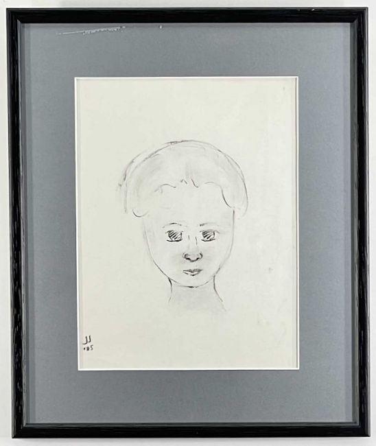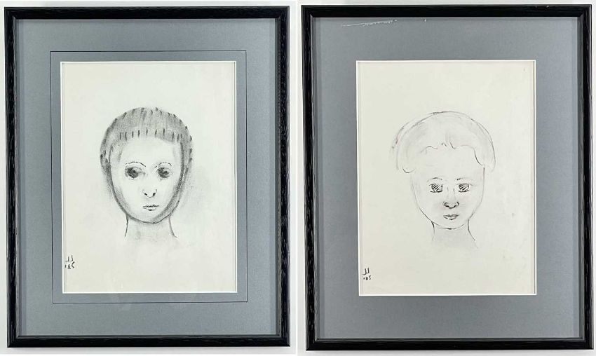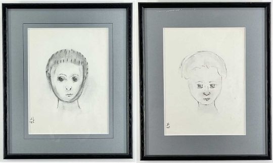 JACK JONES pencil, a pair - Head portrait of a young boy and young girl, signed with initials and dated '85, 25 x 19cms