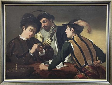 AFTER MICHELANGELO MERISI DA CARAVAGGIO, 19th Century, oil on canvas - 'The Cardsharps', 95 x 128cms