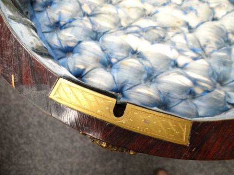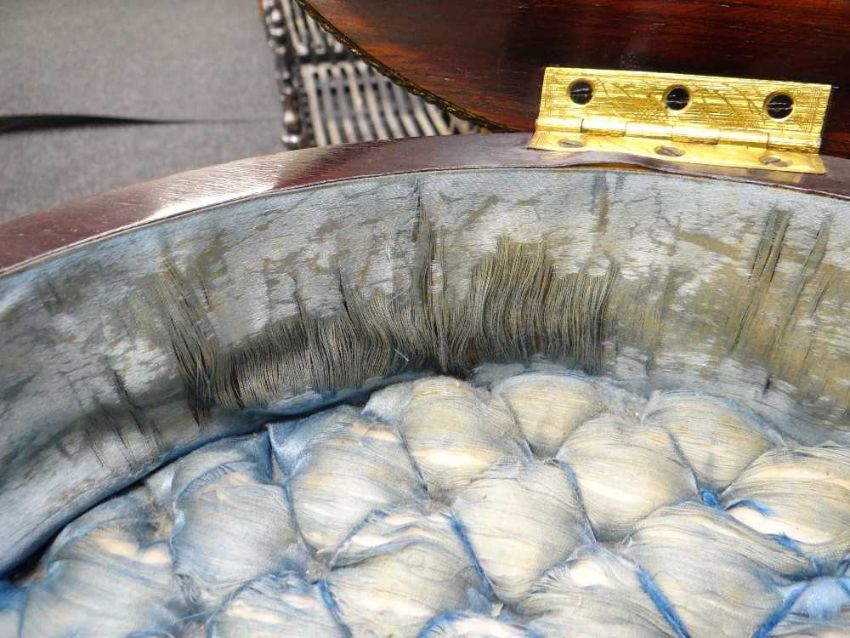 The silk interior is very worn.
