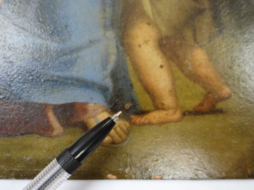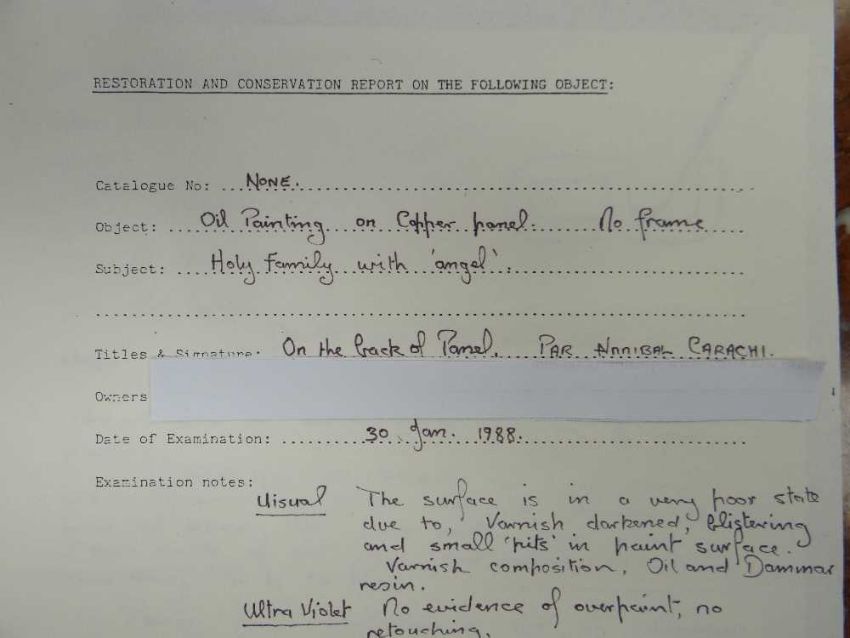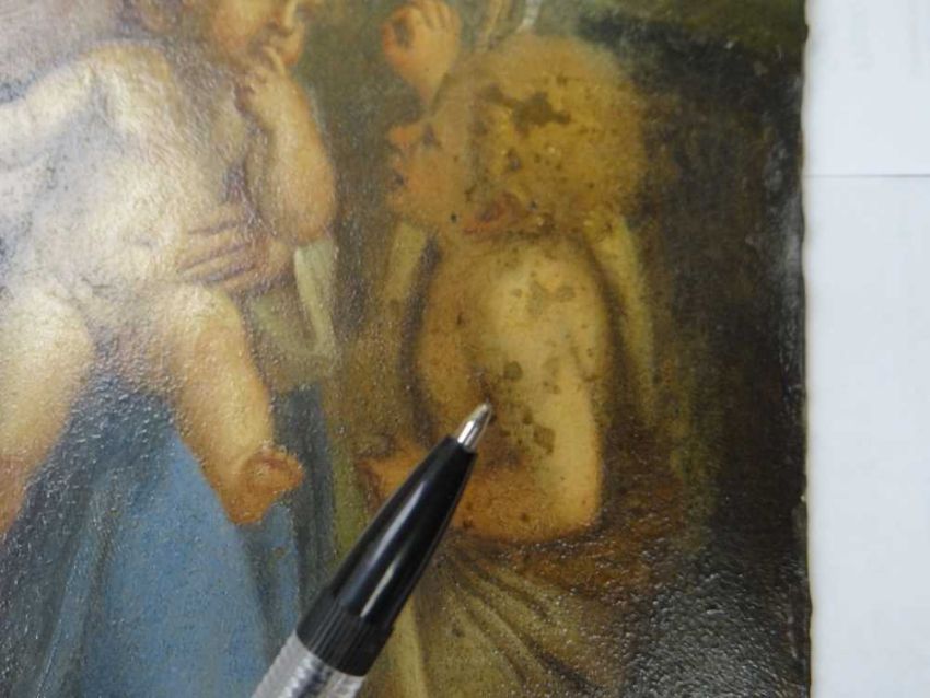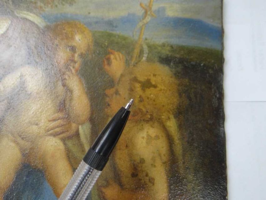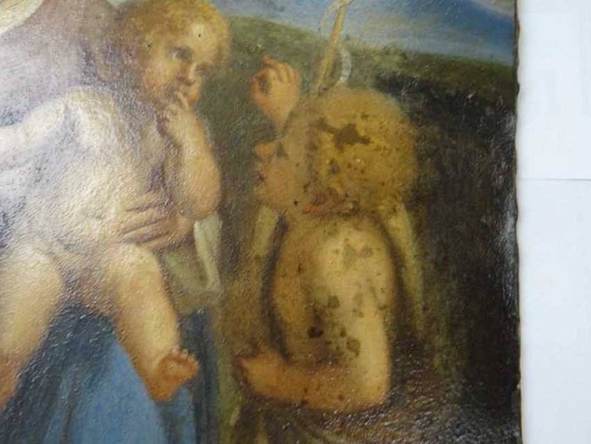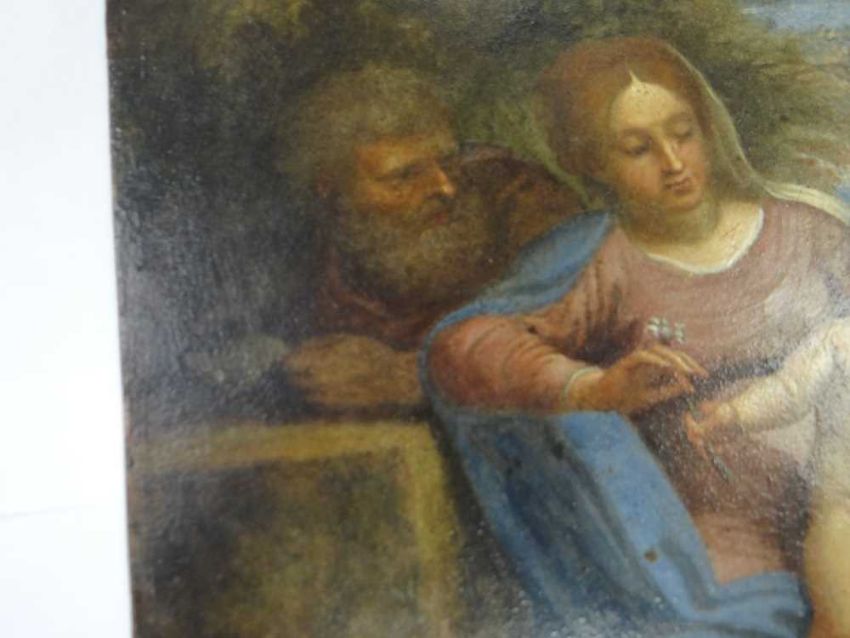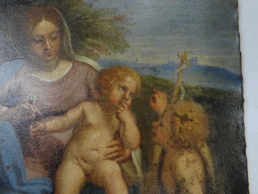AFTER ANNIBALE CARACCI, late 18th Century, oil on copper - Holy Family with Saint John the Baptist, inscribed verso and stencilled number, 28.5 x 22.5cmProvenance: private collection West WalesComments: picture cleaned 1988 (report available)There are areas of paint thinning.There are paint chips around the bottom margin.