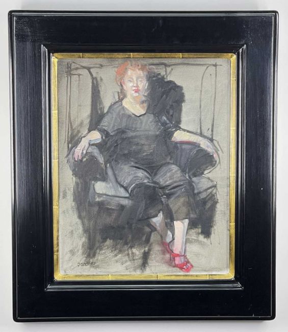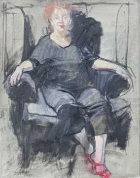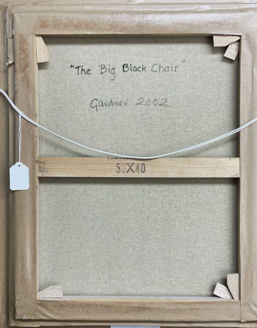 ALEXANDRA GARDNER (Scottish, b. 1945) oil on canvas - The Big Black Chair, signed, titled and dated 2002 verso, 48 x 38cm