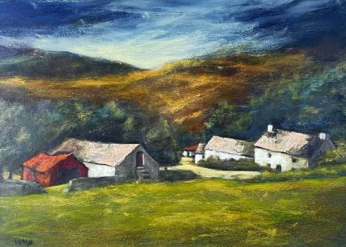 WENDY LLOYD gouache - entitled verso on Albany Gallery label 'Fferm Ffair Rhos', signed, 40 x 56cms