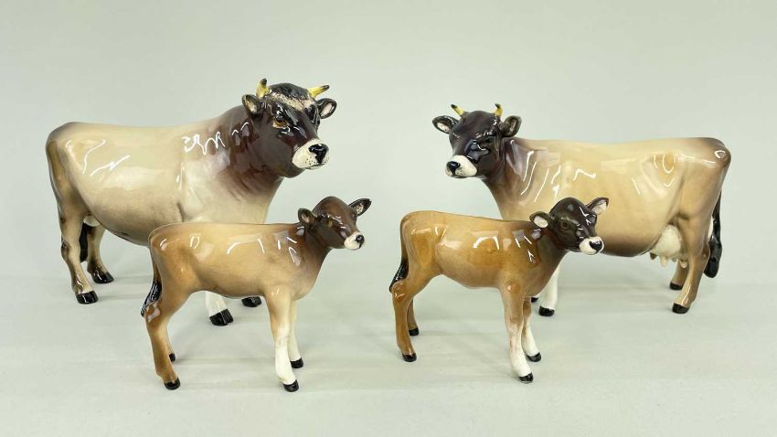 FOUR BESWICK JERSEY COWS, comprising Ch. Dunsley Coy Boy bull (1422), Ch. Newton Tinkle cow (1345), and two calves (4)