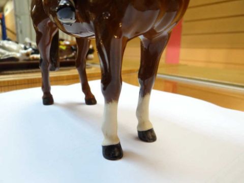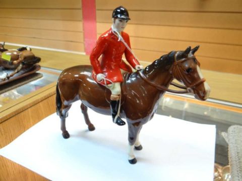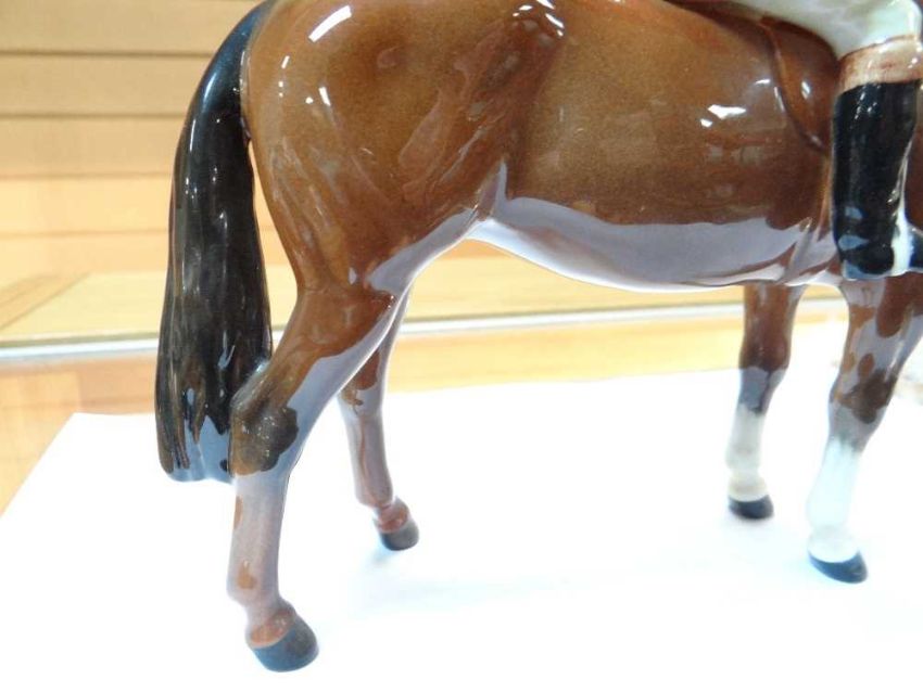The figures on the horses are a little dusty and dirty.