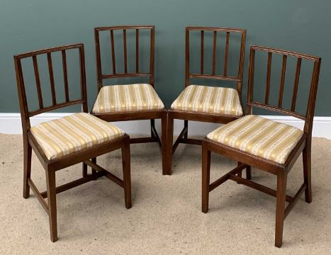ANTIQUE MAHOGANY TWIN PEDESTAL DINING TABLE, 76cms H, 182cms W, 92cms D and a set of four spindleback chairs, 86cms H, 47cms W, 38cms D