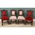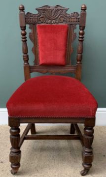 EDWARDIAN PARLOUR CHAIRS, set of four carved oak, two upholstered in pink, two upholstered in red, 100cms H, 49cms W, 46cms D