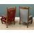 EDWARDIAN OAK ARMCHAIRS, a near pair, one in red upholstery the other in grey, 111cms H, 69cms W, 54cms D