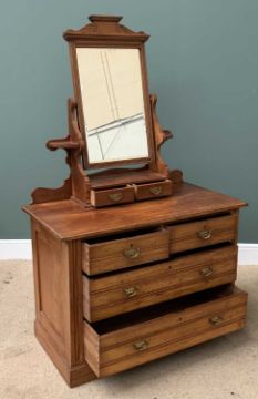 ANTIQUE SATIN PINE DRESSING CHEST with swing mirror and the base having two short over two long drawers, 182cms H, 107cms W, 54cms D