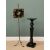 VICTORIAN BRASS POLESCREEN on a twist tripod base having an ebonized and floral painted screen, 150cms H and a painted plant stand on turned and reeded supports, 99cms H, 26cms W, 26cms square top