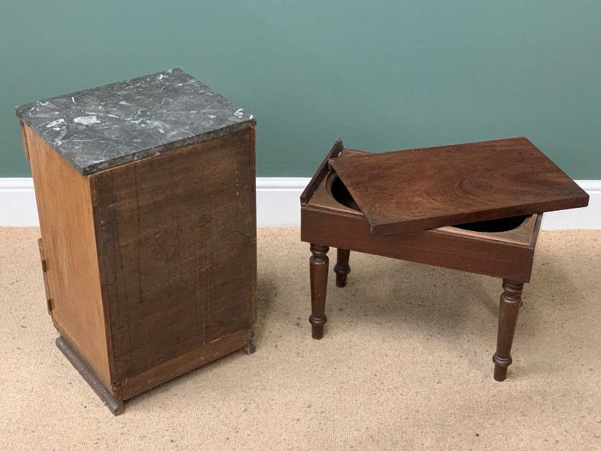 FURNITURE ASSORTMENT (2) - a marble topped bedside cabinet, 66cms H, 41cms W, 34cms D and a commode, 44cms H, 56cms W, 33cms D