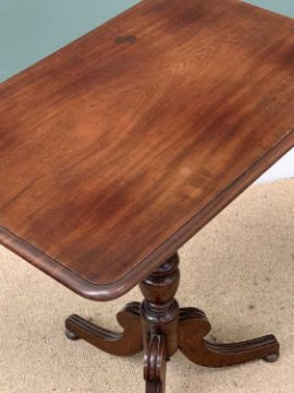 OCCASIONAL TABLE having a rectangular top on tripod supports, 74cms H, 69cms W, 45cms D