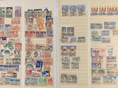 STAMPS - A STOCKBOOK OF COMMONWEALTH MINT & USED - blue album and a similar stock book red album