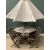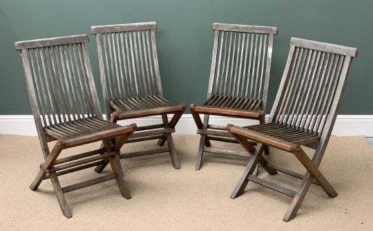 GARDEN FURNITURE - hardwood octagonal folding table, 75cms H, 120cms diameter, four accompanying folding chairs and a parasol