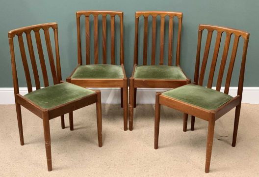 VINTAGE FURNITURE ASSORTMENT to include mid-Century type Long John light wood coffee table, 40cms H, 108cms W, 41cms D, a light wood similar sized glass topped coffee table and four Meredew Avalon dining chairs