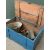 PAINTED PINE LIFT TOP CHEST with iron handles and banding, 42cms H, 89cms W, 49cms D and a quantity of vintage, mainly metalware ETC
