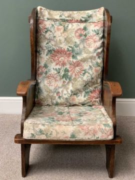ARTS & CRAFTS STYLE PEG-JOINED OAK CHAIR, 103cms H, 70cms W, 56cms D