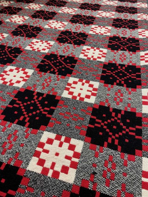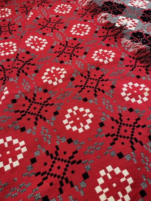 WELSH WOOLEN TAPESTRY BLANKET, white, red and black, 200 x 216cmComments: a few minor stains.