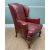 PAIR GEORGE I STYLE WING-BACK ARMCHAIRS, red leather upholstered and close nailed, carved cabriole feet with shell knees, 84cms wide each (2)Comments: leather-upholstered not simulated as previously stated.