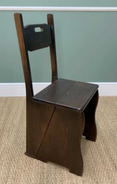 ASSORTED MODERN REPRODUCTION GEORGIAN-STYLE FURNITURE including low boy, sofa table, drop flap coffee table, circular coffee table and metamorphic library steps (7)Comments: One leg of the low circular table is loose/damaged and requires repair. One leg of the drop-flap has split, is loose, and requires repair.