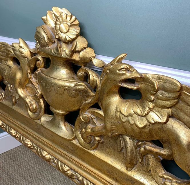 MODERN 19TH CENTURY STYLE GILT MIRROR, with urn & griffon cresting, 110 x 122cm