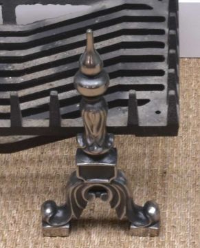 PAIR OF MODERN IRON & STEEL WIDE FIRE GRATES, each with pair of chenet supports, 90 x 40cms