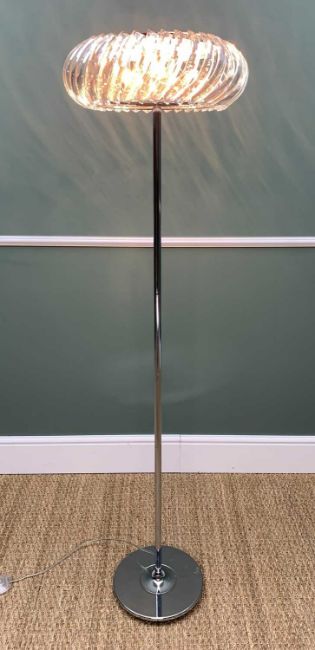 IMPEX STANDARD LAMP, perspex 'crystal' shade with frosted glass cap, on chrome stem,