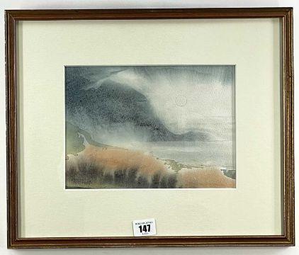 GWILYM PRICHARD watercolour - misty coastline, signed