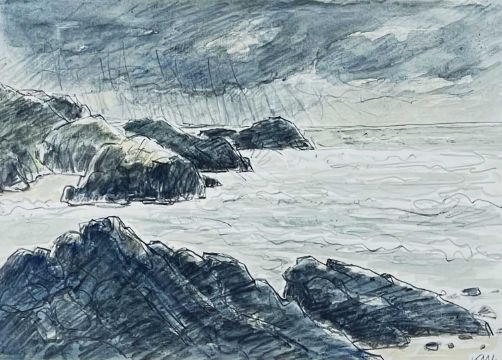 SIR KYFFIN WILLIAMS RA watercolour and pencil - entitled verso 'Sea at Llanddwyn', signed with initials