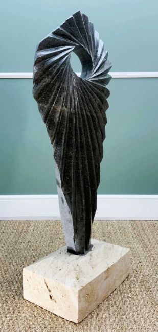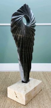 DARREN YEADON Bluestone sculpture - abstract mounted to white marble square plinth
