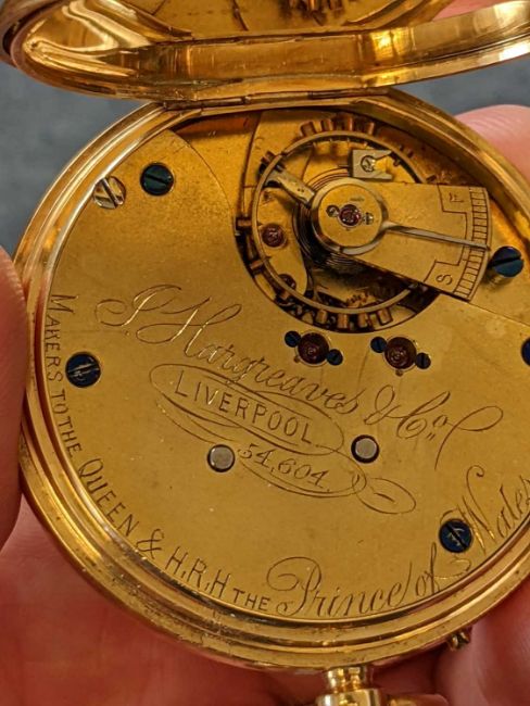 18CT GOLD J. HARGREAVES & CO. LIVERPOOL CHRONOGRAPH POCKET WATCH, Chester 1896, the signed white enamel dial with Roman numerals and Arabic outer scale, blued steel sweep second hand, covers and case stamped 18, 115.2gms gross wt.