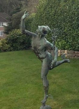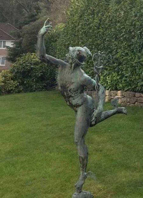 LARGE BRONZE GARDEN STATUE OF MERCURY, after Giambologna (Italian, 1529-1608), modelled riding the wind issuing from the mouth of Zephyr, on plinth base