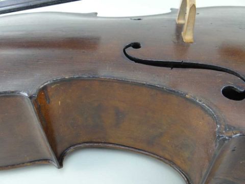 corner with old chip, varnish worn, base with repaired cracks.