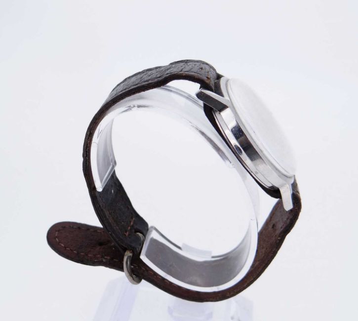 VINTAGE GENTS OMEGA GENEVE WRISTWATCH, re.135.070, 17J cal. 601 automatic movement, stainless steel, baton hour markers to the champagne dial, 33mm case, leather strapComments: ticks when wound at present (not timed for accuracy), perspex moderately scratched, strap very worn/creased/stained.Provenance: private collection Cardiff, consigned via our Cardiff Office