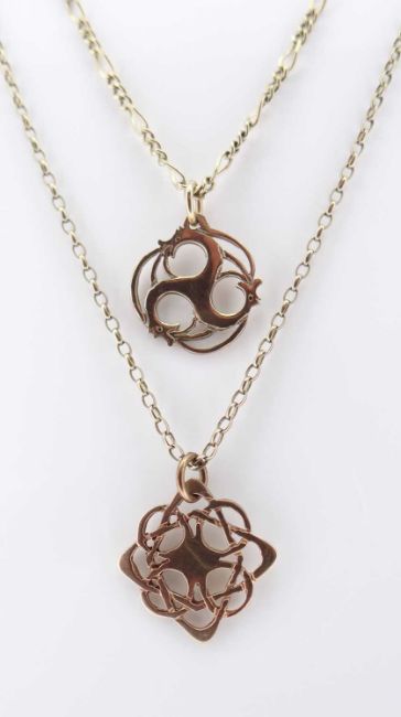 GOLD JEWELLERY comprising Celtic design pendant hallmarked 'Aur' and 'Cymru' on 9ct gold chain together with another similar 9ct gold pendant on chain, 9.2gms gross (2)Provenance: deceased estate Rhondda Cynon Taf, consigned via our Carmarthen Office