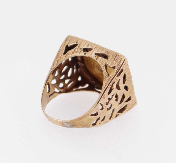 9CT GOLD TEXTURED & PIERCED SQUARE RING set with gold South African 1/2 Pond coin, ring size S, 13.1gmsProvenance: private collection Neath, consigned via our Cardiff Office