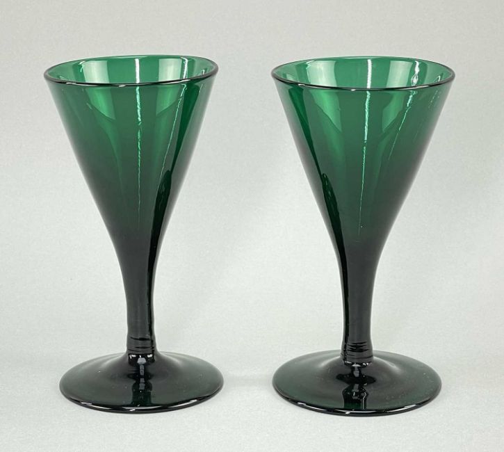 PAIR EARLY 19TH CENTURY BRISTOL GREEN WINE GLASSES, conical bowls (2)