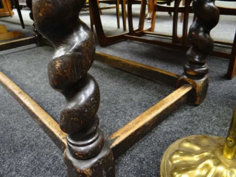 17TH CENTURY-STYLE OAK REFECTORY TABLE, twin plank top with cleated ends, on lunette carved frieze, raised on barley-twist legs joined by bar stretchers, 189 x 73cms