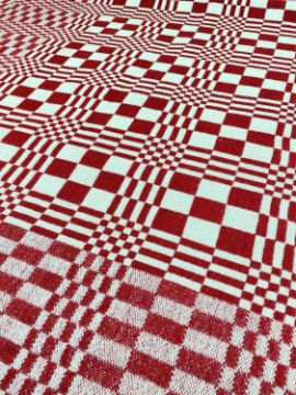 WELSH WOOLLEN 'TAPESTRY' BLANKET, red and white, 178 x 229cm