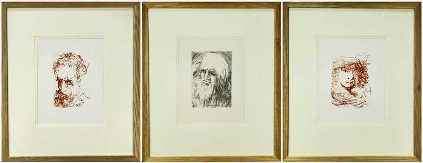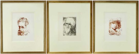SALVADOR DALI (Spanish, 1904-1989) Templeton & Rawlings etchings set of three - from the artist's 'Immortals of Art' series, portraits of artists Michaelangelo, Leonardo da Vinci, Rembrandt, signed and dated 1968 on plate with 'GC' for Collectors' Guild New York, with Templeton & Rawlings certificates of authentication, 25.5 x 19.5cmsComments: framed and glazed