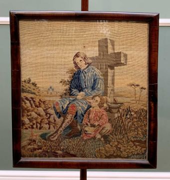 THREE 19TH CENTURY POLE SCREENS, two William IV with circular and rectangular panels, the third mid-Victorian with cartouche shaped panel, all inset with needlepoint embroideries (3)Comments: damage to finial of one, restoration to base of other
