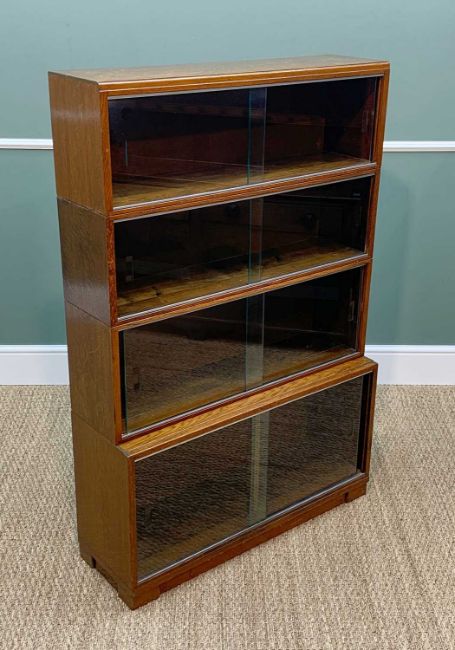 TWO MID-CENTURY 'MINTY' OAK SECTIONAL BOOKCASES, of three and four tiers respectively (2)